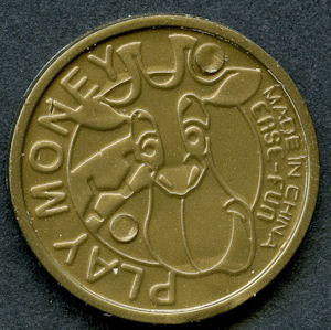 'play money made on china ease-fun ' round stylised animal (reindeer?)