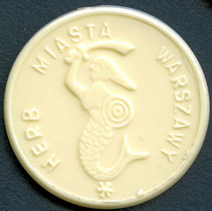 'herb miasta warszawy' round mermaid waving a cutlass