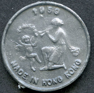 '1959' over piper and dancing cherub over 'made in hong kong'