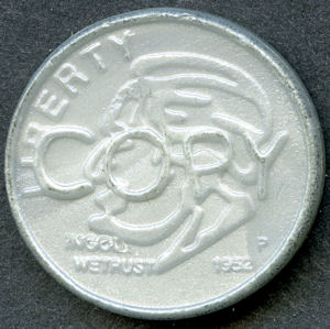 ' united states of america' over olive branch, torch and oak and ' epu kie isu num' over 'one dime' with dominant relief 'copy'