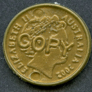 'copy' over 'elizabeth 11 australia 2002' round queen's head