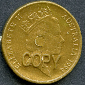 'copy' over 'elizabeth 11 australia 1994' round queen's head