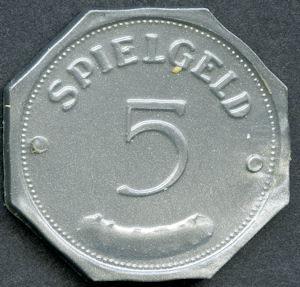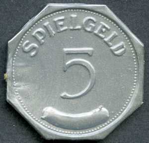 ' spielgeld' over '5' and curved bar