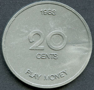 '1983 ' over '20 cents' over 'play money'