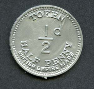 also in brassy and brown and presumably terra cotta. found in Success Play Money set contents of each set varies in colours notes found with say Bank of Kiddy Cash need terra cotta 1/2d and 6d also d brown, 2/6, 2/- and 1/-